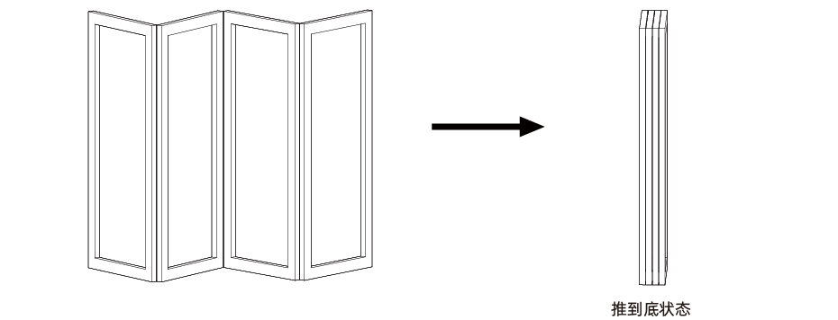 門扇可折疊,折疊后門扇所占門洞的空間非常小,通道達到最大化,使得通行更加自如。