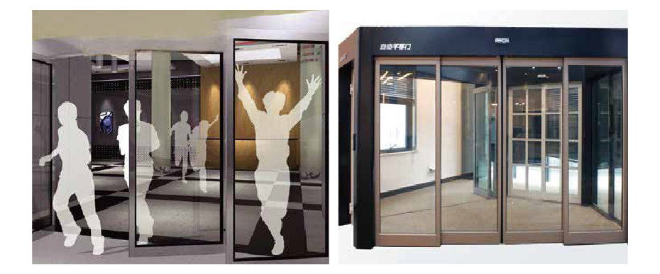 在門體的定扇距地面1米的高度設(shè)置一對防夾電子眼,確保自動門中有人或物體時門扇自動打開,以免夾傷人或物體。