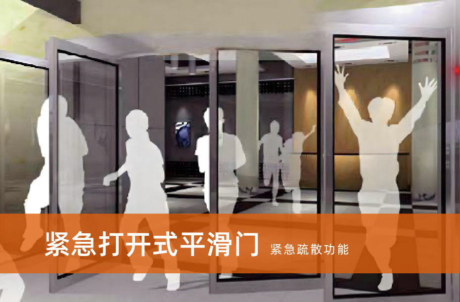緊急打開式平滑門具備自動平滑門特點(diǎn),且適用與于逃生和大通行寬度的需求。遇到緊急情況或需要臨時大開口通道功能時,無論門在任何狀態(tài)(關(guān)閉、自動運(yùn)行)時,動扇、定扇均可向緊急疏散方向手動推開,并可向側(cè)面移動,以達(dá)到完全打開的位置,幾乎可以實(shí)現(xiàn)通道的整個寬度和高度。